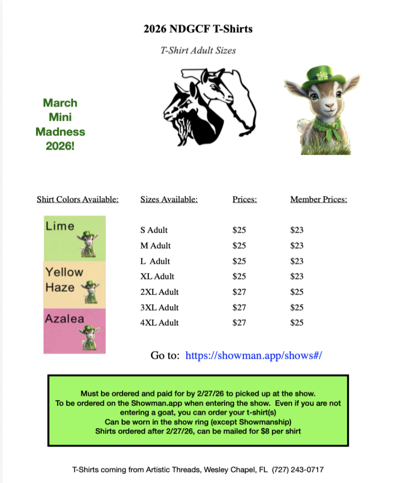 All animals will be inspected by a Show Committee person prior to entering the show grounds. Health papers are NOT required for Florida exhibitors where the animals have been in Florida prior to the show..